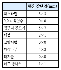 해 설 팽진의 장단경의 평균이 히스타민 보다 큰 경우에만 의미있는 것으로 판단한다.