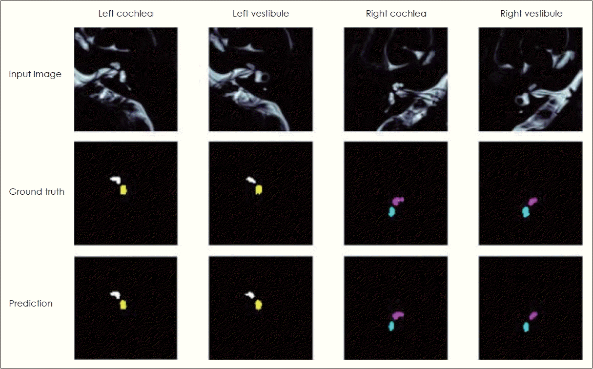 자동화 시스템의 도입을 위해 이전 연구들에서는 내이 기관의 자동 분할(automatic segmentation)을 적용하였다. 예를 들어, 한 연구에서는 임계값 기술(thresholding techniques)과 수동 분할 방식을 결합한, 반자동 CT 영상 분할에 대하여 기술하였지만, 이는 여전히 분할 과정을 위해 전문가에 의한 세부 조정이 필요하였다[20]. 또다른 연구에서는 3차원 재건 영상을 위한 Niblack 분할 알고리즘과 랜덤 포레스트 분류기(random forest classifier)를 적용하여 내림프 공간과 총 림프액 공간을 측정하였지만 이 역시 완전자동화 시스템이라고 보기에는 어렵다[21]. 이에 개별 기관(와우, 전정기관)의 의미적 분할(semantic segmentation)을 위한 더욱 자동화된 딥러닝 알고리즘(deep learning algorithms)의 필요성이 대두되었고 본원에서는 해당 시스템을 개발하여 적용하고자 하였다.